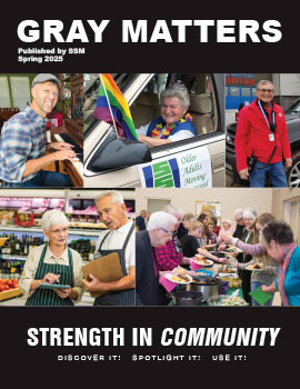 Gray Matters, SSM’s magazine, comes out 4 times per year with 10,000 – 11,000 printed copies. The publication reaches over 100,000 readers as it is sent out to seniors centres, hospitals, businesses, government, health districts, nursing homes and individuals throughout Saskatchewan.